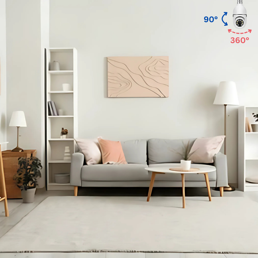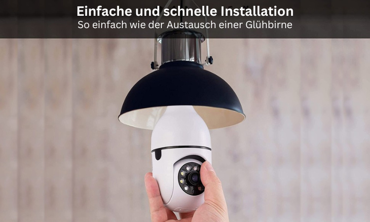 Alles, was Sie brauchen, ist eine herkömmliche Lampenfassung, in die Sie die Kamera einfach einschrauben können. Sei es an der Decke oder in einer Stehlampe.