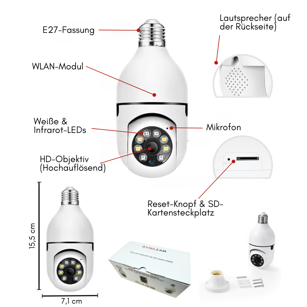 Ich war zunächst skeptisch beim Kauf einer Kamera, die in eine Glühbirne integriert ist. Aber die VigilCam hat all meine Erwartungen übertroffen! Die Installation war kinderleicht und die App ist sehr intuitiv. Es beruhigt mich, jederzeit über mein Smartphone nachsehen zu können, ob zu Hause alles in Ordnung ist. Ich empfehle dieses Produkt jedem, der eine diskrete und zuverlässige Überwachungslösung sucht.